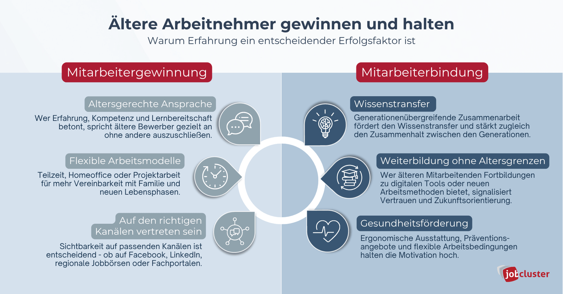 Schon seit einigen Jahren ist der Fachkräftemangel in aller Munde und bringt vielen Organisationen anspruchsvolle Herausforderungen. Ganz vorne dabei: Mitarbeiter finden und langfristig binden. Während sich Recruiter häufig auf junge Arbeitnehmer fokussieren, wird eine wertvolle Zielgruppe oft unterschätzt: die älteren Arbeitnehmer. Dabei bringen sie genau das mit, was häufig fehlt: Erfahrung, Stabilität und Loyalität. Erfahren Sie, wie Sie ältere Arbeitnehmer mit einigen praxisnahen Recruiting-Tipps gezielt gewinnen und langfristig binden.