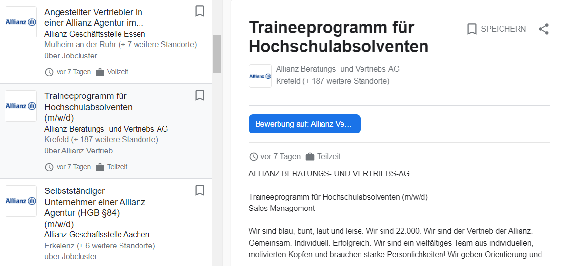 Allianz-Stellenanzeigen von der eigenen Karriereseite auf „Google for Jobs“