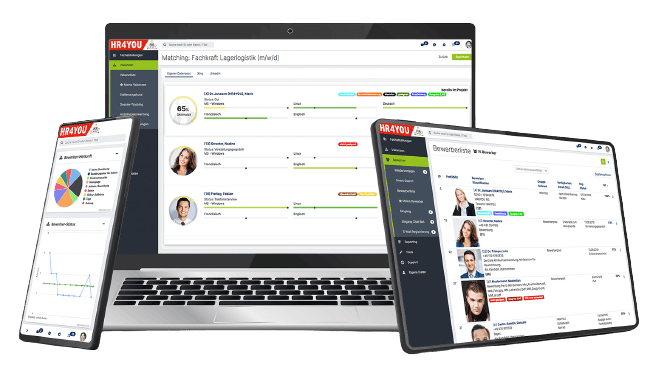 Für eine noch effektivere Bewerberverwaltung können Sie eine Integration Ihrer vorhandenen HR4YOU Bewerbermanagement-Lösung bei uns anfragen. Alternativ können Sie unser eigenes Bewerbermanagementsystem nutzen, um alle eingehenden Bewerbungen in einem Tool zu erfassen und zu verwalten.