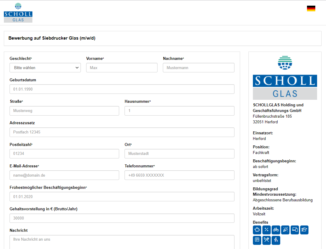 Dank der Suchmaschinen- und Google for Jobs-Optimierung unserer Karriereportal-Technologie wird Ihre Karriereseite besser auffindbar und erhöht somit Ihre Sichtbarkeit bei neuen Talenten. Kontaktieren Sie uns und nutzen Sie unser Know-how, um Ihre Karriereseite auf das nächste Level zu bringen!