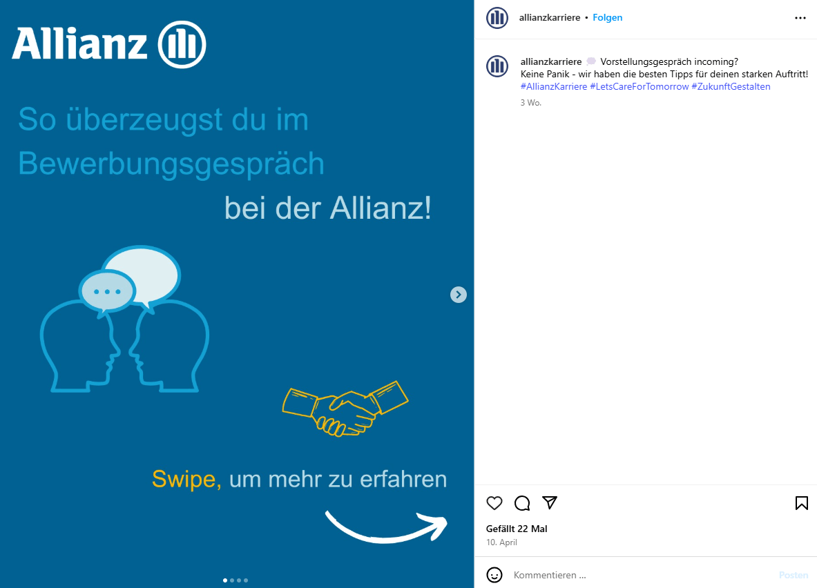 Informativer Karussell-Post der Allianz zum Bewerbungsgespräch