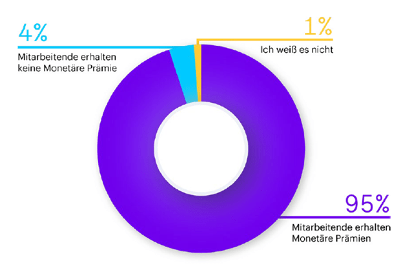 63 Prozent der befragten Organisationen zahlen ihre Prämien einmalig aus. Die Einmalzahlung wird bei der Hälfte der Organisationen nach 6 Monaten vergütet. Nur ein Drittel der Organisationen hingegen zahlt seinen Mitarbeitern gestaffelte Prämien aus.